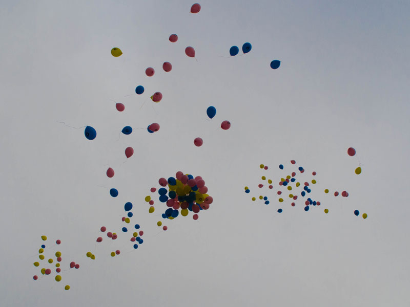 – TV-BRA, er det rungende svaret han får tilbake. Og i det sangen spilles, på ordentlig denne gang, slippes de mange, ballongene opp mot himmelen. I fargen rosa, blå og gul svever de opp høyt over Festplassen, høyt over Bergen.