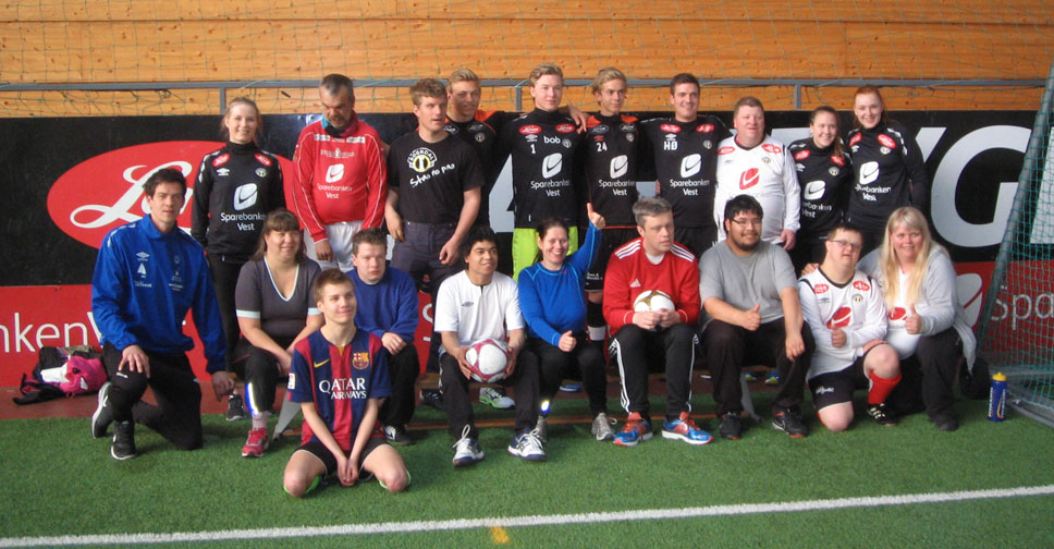 Eg kontakta fyrst Sogn og Fjordane Fotballkrets og Sogndal Fotball. Norges Fotballforbund hadde da nyleg satt igang eit inkluderingsprosjekt, «Fotball for alle». Dette visste eg ikkje, så det vart ein gledeleg overraskelse då eg skjønte at eg kom i rette tid. Vi hadde så eit info- og oppstartsmøte hausten 2005 saman med Fotballkretsen, Sandnessjøen Idrettslag Fotball (SIL), Norsk Forbund for Utviklingshemmede (NFU) og andre interesserte. Vinteren 2006 starta vi opp med trening annankvar veke i storhallen her i Sogndal. Det kom deltakarar frå fleire nabokommunar. Treningen bestod av ein felles oppvarmingsdel med dans, polynese, og fallskjerm som vi gjorde ulike øvingar med. Etterpå delte vi salen i to og hadde stasjonstrening og fotball. To spelarar frå A-laget var med oss og dette var svært moro for dei av deltakarane som var opptekne av fotball og heia på SIL sitt A-lag. Denne treningen hadde vi frå 2006 fram til sommaren 2008. Då vart det litt utfordrande å lede denne aktiviteten åleine sidan mine to eigne jenter vart større og meir aktive og trengte meir oppfylgjing. Vi tok ei pause og eg gjekk i «tenkeboksen». Det måtte være mogeleg å finne ein annan måte å drive eit slikt aktivitetstilbod på, tenkte eg. Eg kontakta så Sogndal Fotball hausten 2009 for å prøve å få igang fotballsamlingar for spelarar frå heile fylket. Dette vart Håvard Flo engasjert i og vi hadde så tre «Fotball for alle«-samlingar i løpet av 2010 og det har vi prøvd å arrangere sidan. Det har delteke opp imot 18 spelarar frå heile fylket på desse samlingane, og vi har treningssamlingane i Sogndal og på Byrkjelo. Vi veit at det er fleire aktuelle fotballspelarar rundt om i Sogn og Fjordane så vi håpar å nå ut til desse med info. Eit av måla våre er å kunne få igang fotball-lag og treningar rundt om i klubbane i fylket for så å ha mini-turneringar i Nordfjord, Sunnfjord og Sogn i løpet av sommarhalvåret. Eg vil nytte anledningen til å rose Stryn fotball som har eit slikt treningstilbod i sin klubb.