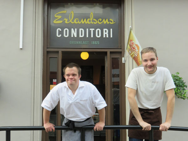 Vernepleierportalen vil fremover formidle ulike modeller for å inkludere personer med utviklingshemming i ordinært arbeidsliv. Først ut er Erlandsens Conditori i Halden, bygd på tanken om at utviklingshemmede skal kunne eie og drive noe selv. Fire personer har sitt daglige virke der: tre eiere og en personlig assistent. Vernepleier Kari Megrund besøkte dem.